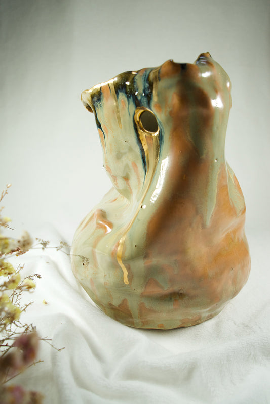 Drawing from personal memories and universal symbols of comfort, she crafts forms that evoke warmth, playfulness, and curiosity. Her use of texture, materiality, and hand-built imperfections brings a tactile, almost storybook-like quality to her work—where every curve, indentation, and raw edge carries echoes of time, touch, and sentimentality.