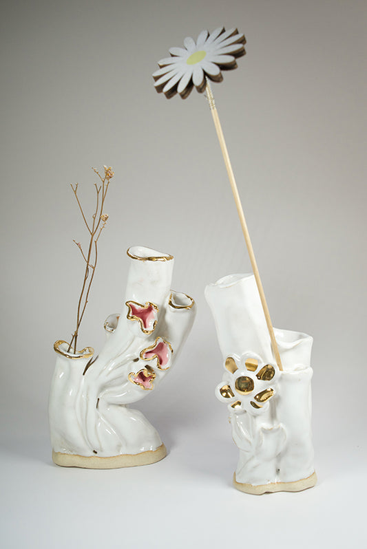 Drawing from personal memories and universal symbols of comfort, she crafts forms that evoke warmth, playfulness, and curiosity. Her use of texture, materiality, and hand-built imperfections brings a tactile, almost storybook-like quality to her work—where every curve, indentation, and raw edge carries echoes of time, touch, and sentimentality.