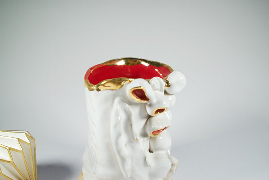 **Hania Jneid is not just a ceramicist but an artist who explores emotion, memory, and the intangible connections between objects and human experience. Through her work, she investigates the concept of nostalgia—creating pieces that awaken a sense of wonder, innocence, and the purity of childhood. Her objects are more than functional; they are vessels of feeling, inviting the user to reconnect with their inner child and the magic of fleeting moments.