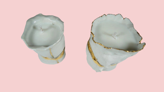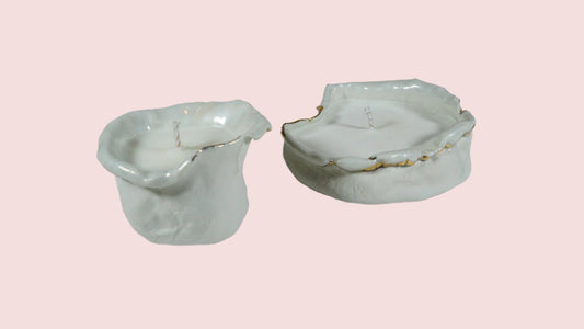 White and Gold Porcelain Duo Candle Holder No 3
