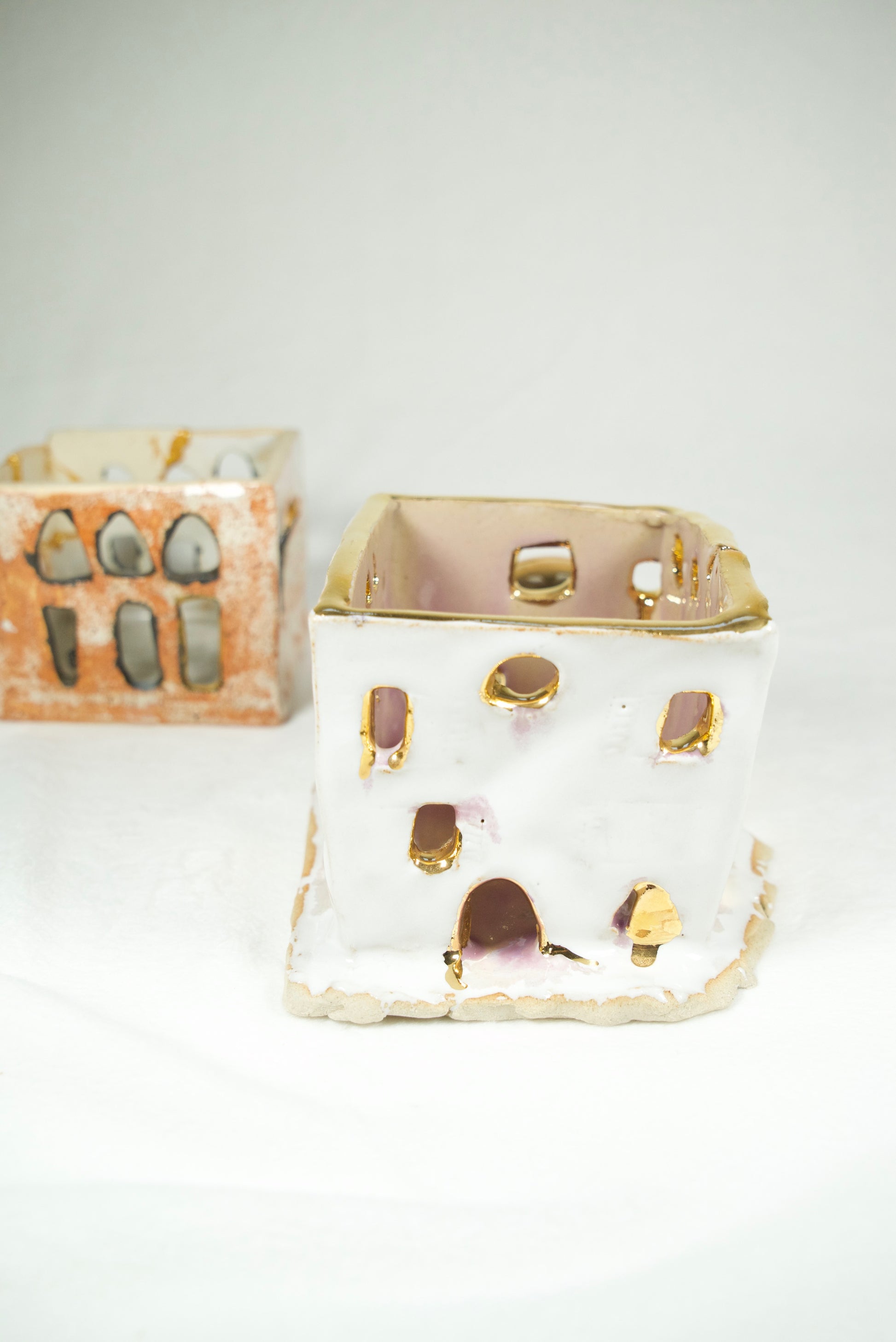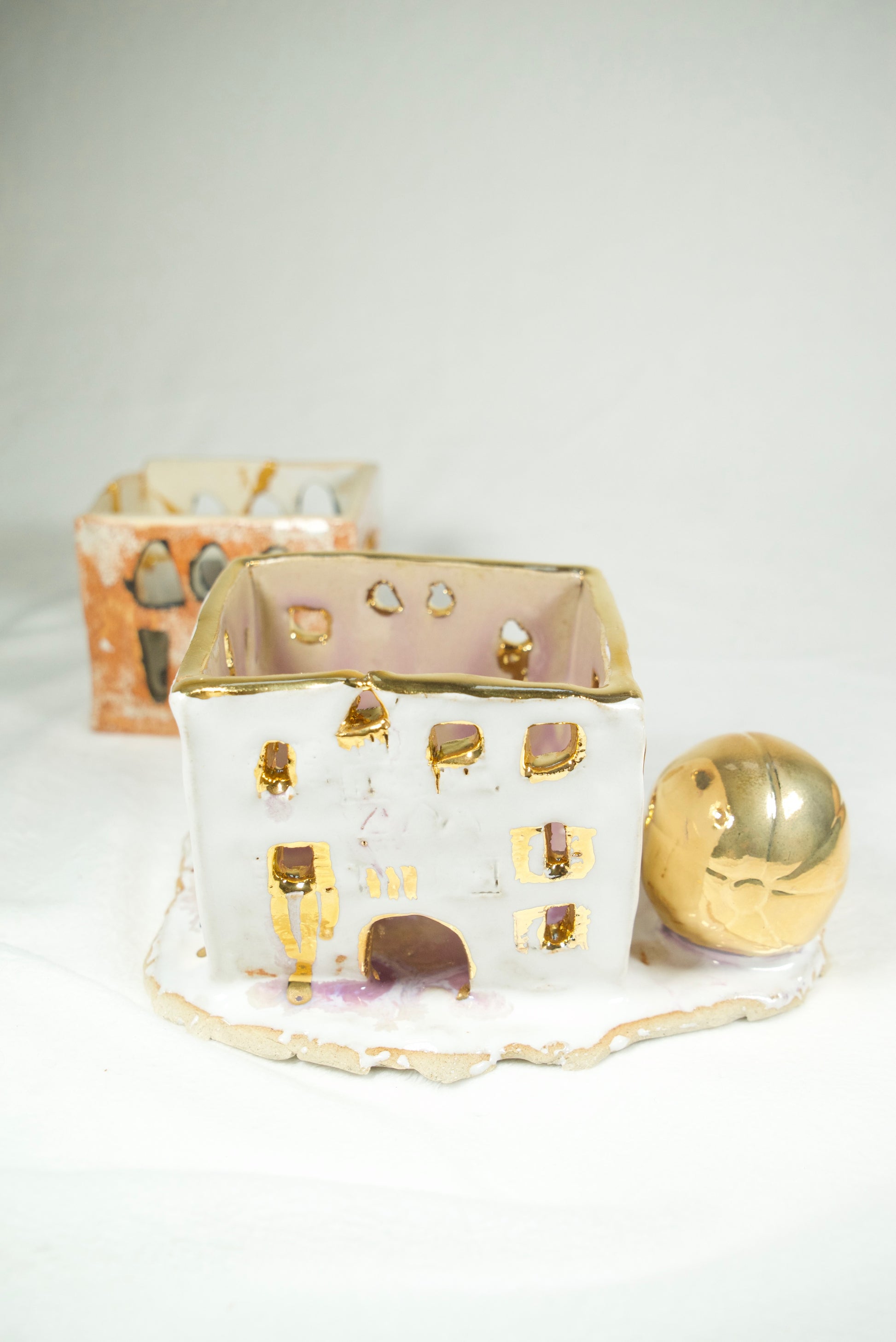 “Homes of Memory” is a collection of hand-built stoneware sculptures, each representing a Lebanese heritage house shattered—and remembered—by the August 4 explosion at the Beirut Port. Each house tells a different story of loss, love, and hope through unique finishes and symbolic adornments. From blooming flowers to small footballs and embracing hands, every detail echoes the lives once lived within these walls and the tenderness that remains.