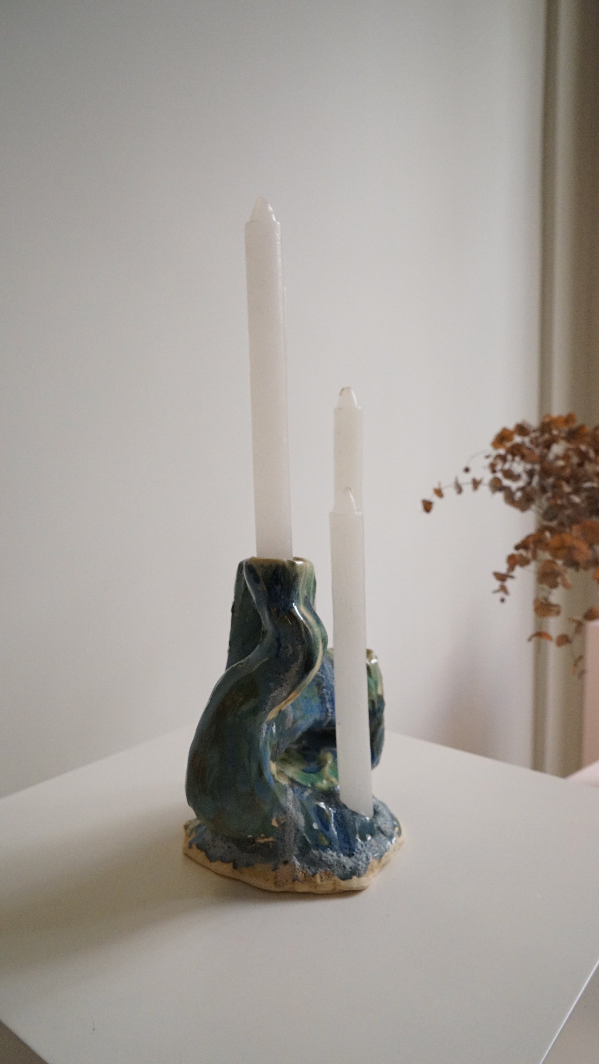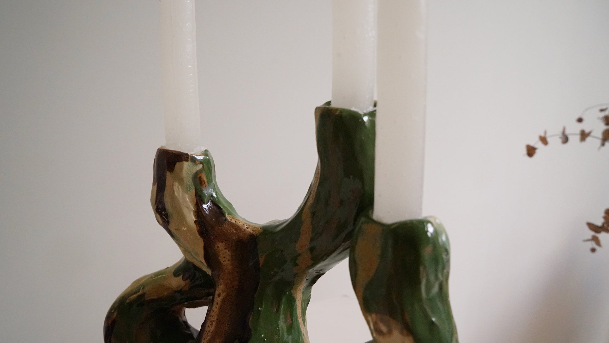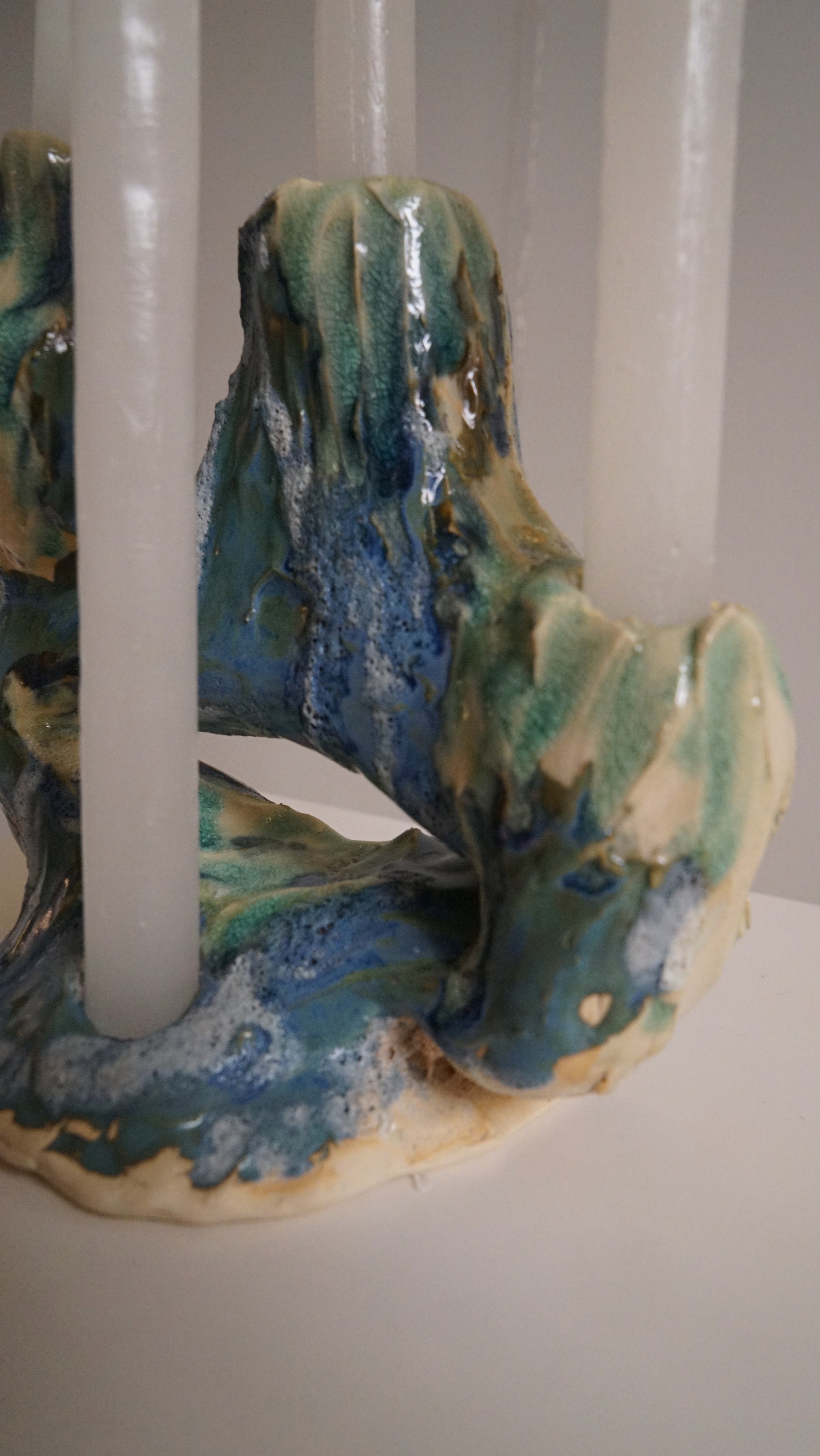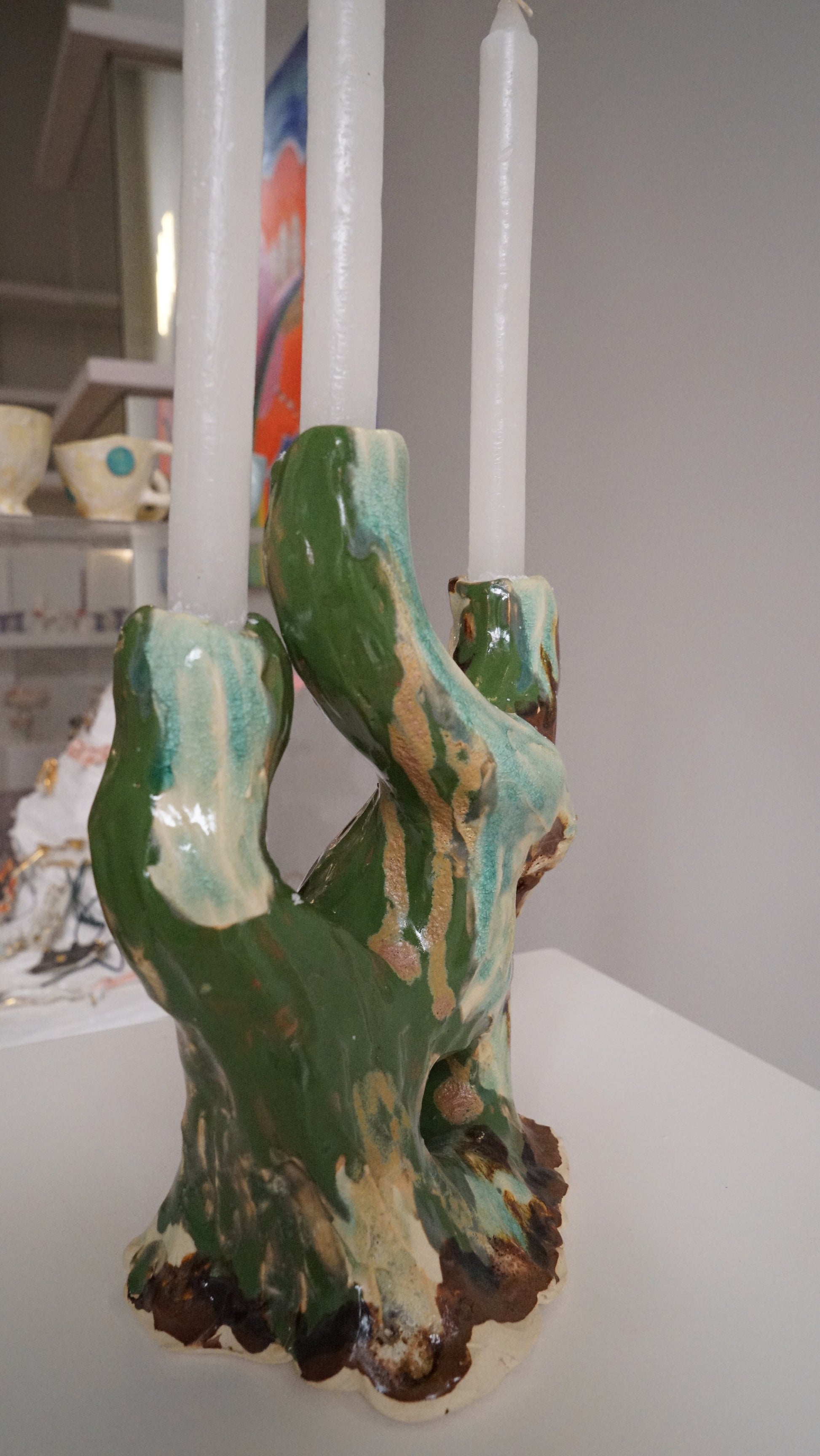 This unique Candelabra is a numbered investigation sculptural design by artist designer Hania Jneid. The Colours are inspired from nature and the design simulates it as well.