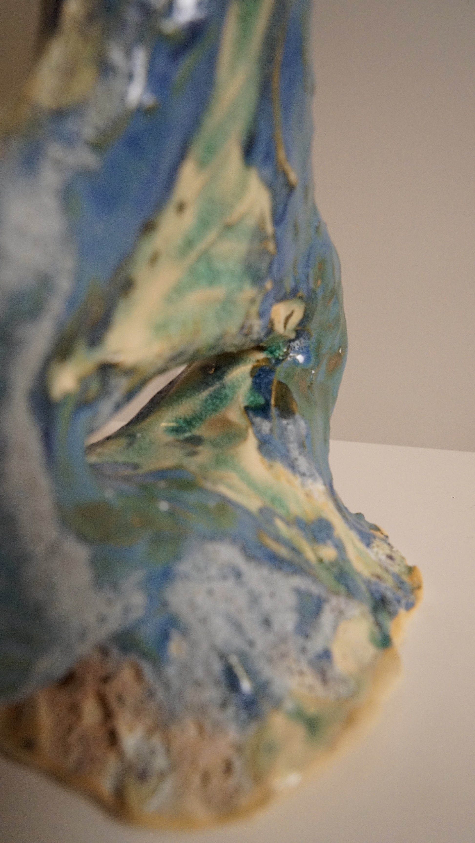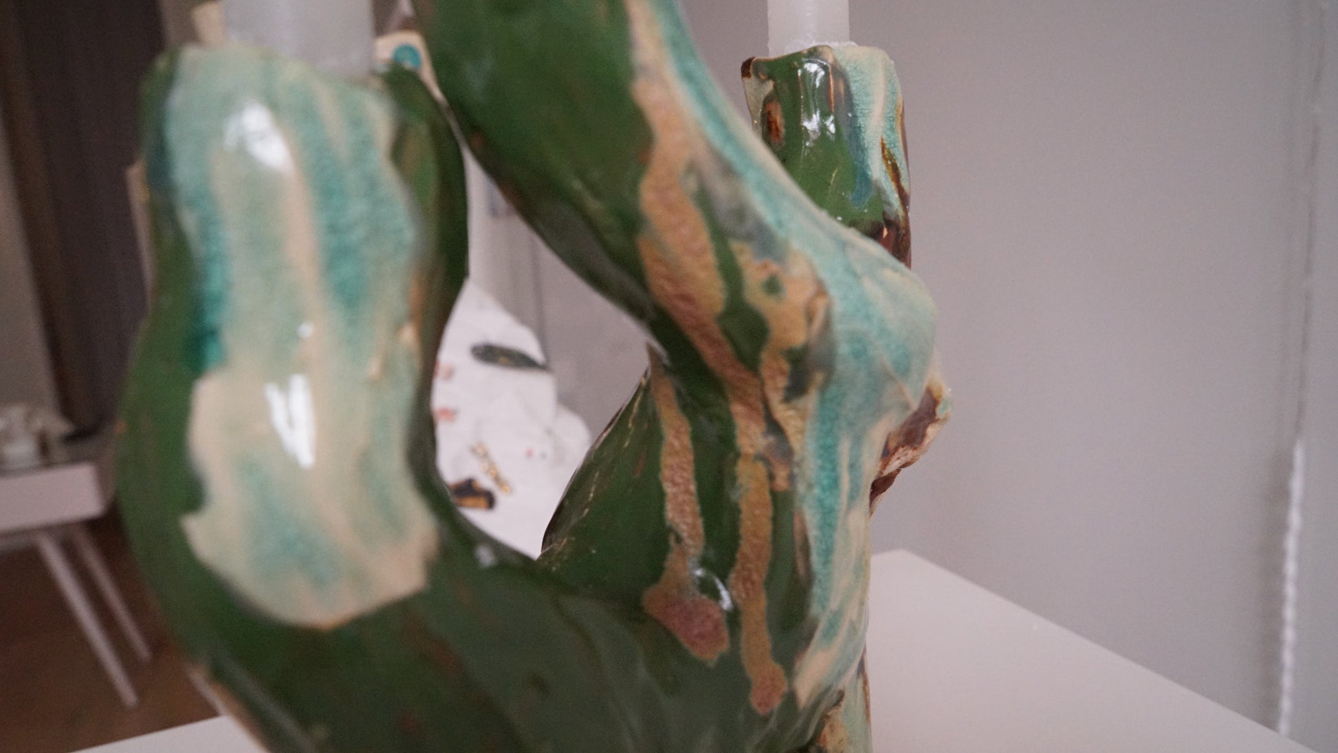 The technique is intuitive and relies on carving a stoneware block until reaching the final shape.