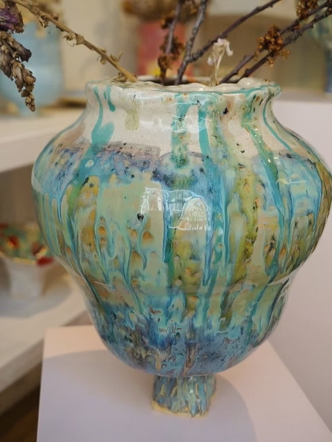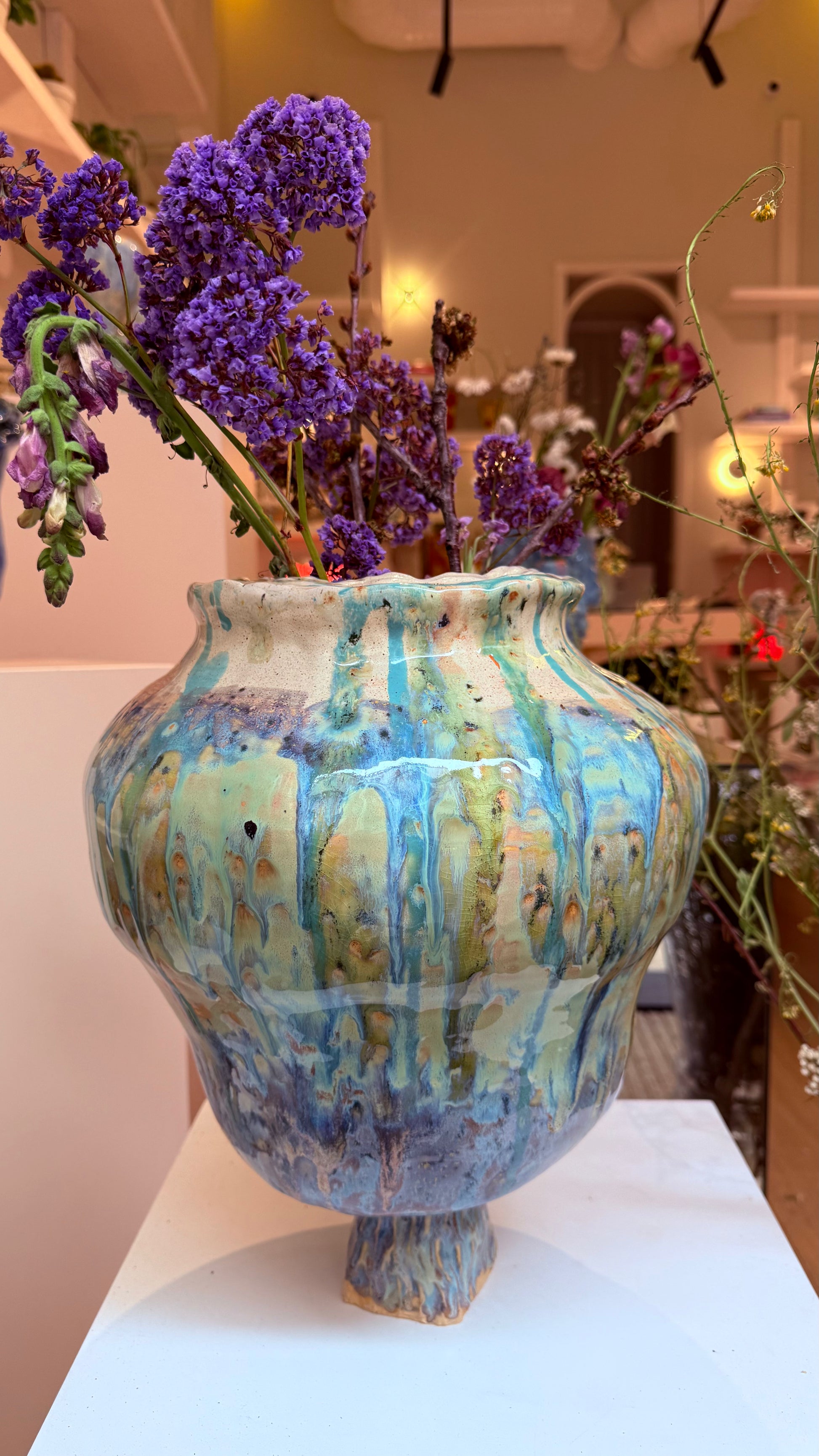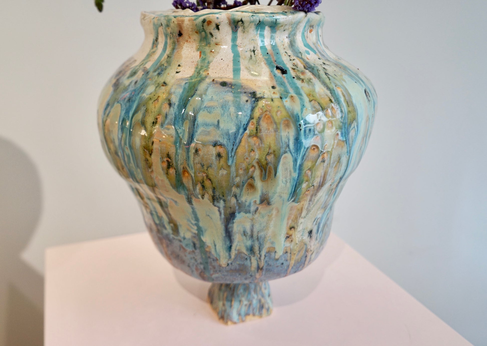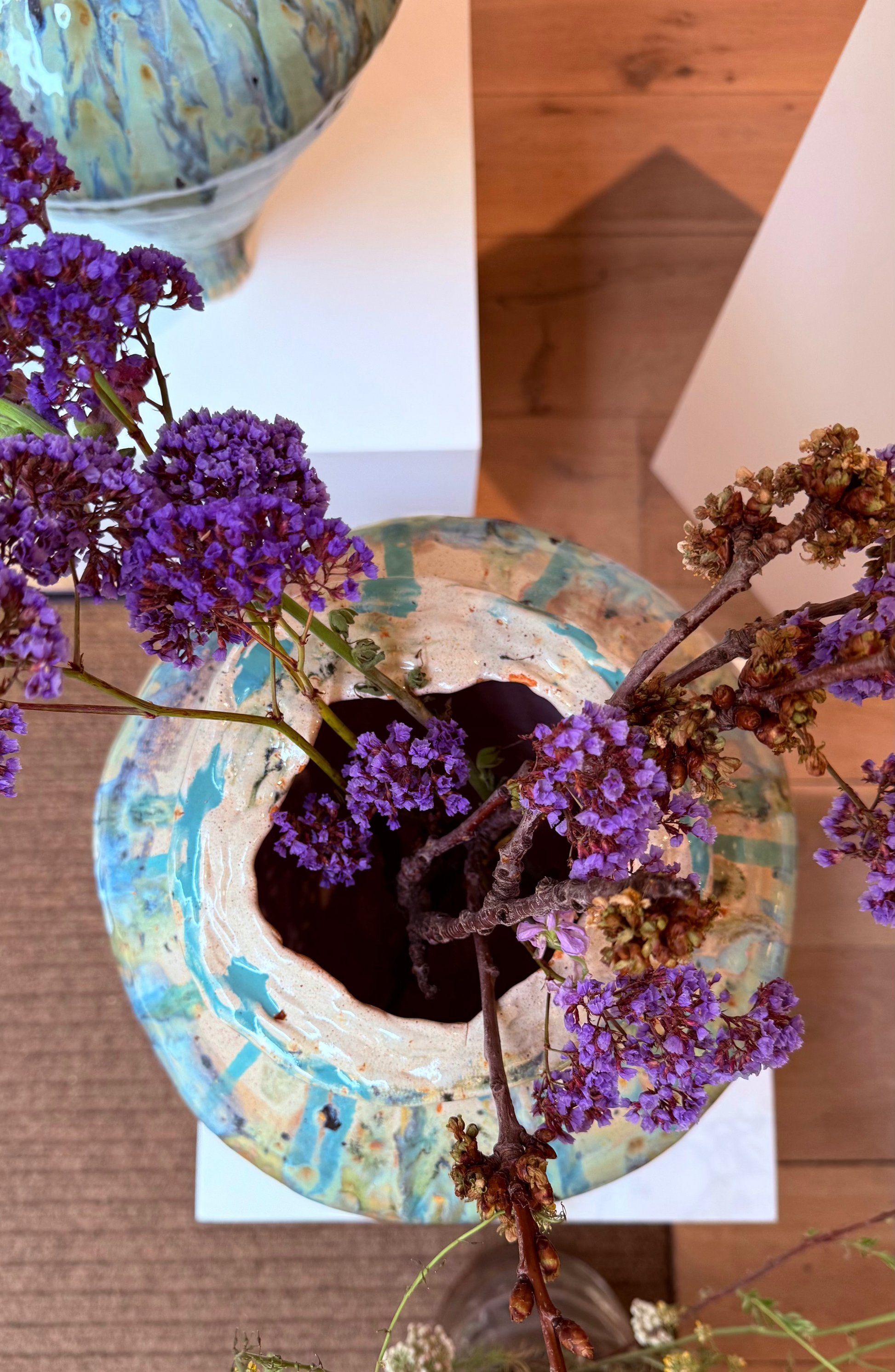 Hand-built with an intuitive approach, the collection rejects rigid structures in favor of fluid, organic shapes. Jneid allows the clay to guide the process, celebrating its rawness while infusing it with a refined artistic sensibility. The result is a series of sculptural objects that feel both ancient and modern—rooted in primitive craftsmanship yet deeply personal and contemporary.