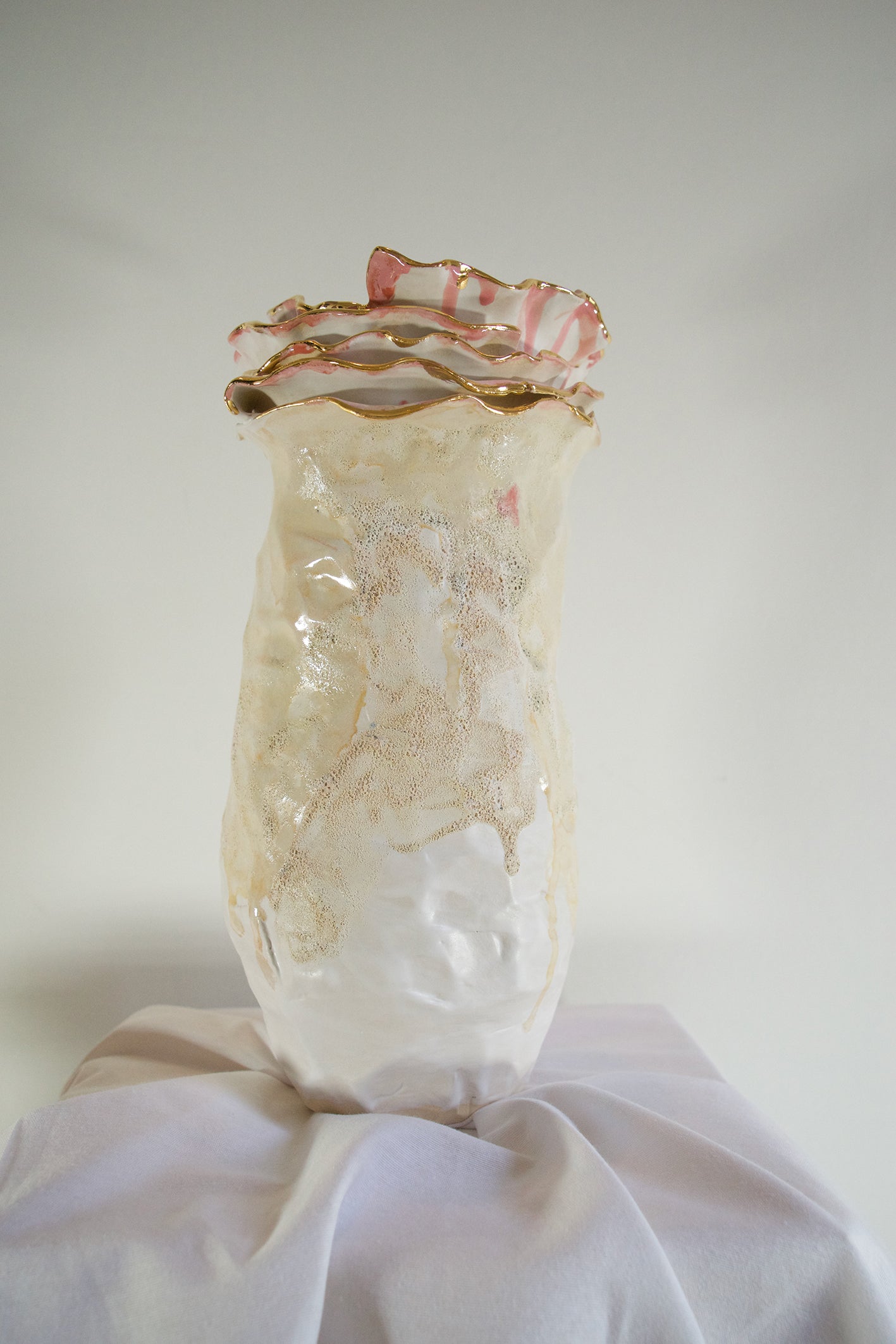 Each piece is hand-built, embracing the imperfections that define her signature style. The organic curves and tactile surfaces echo the drama of a dancer’s flowing dress, the rhythm of castanets, and the soulful essence of duende—the emotional depth at the heart of Spanish art.