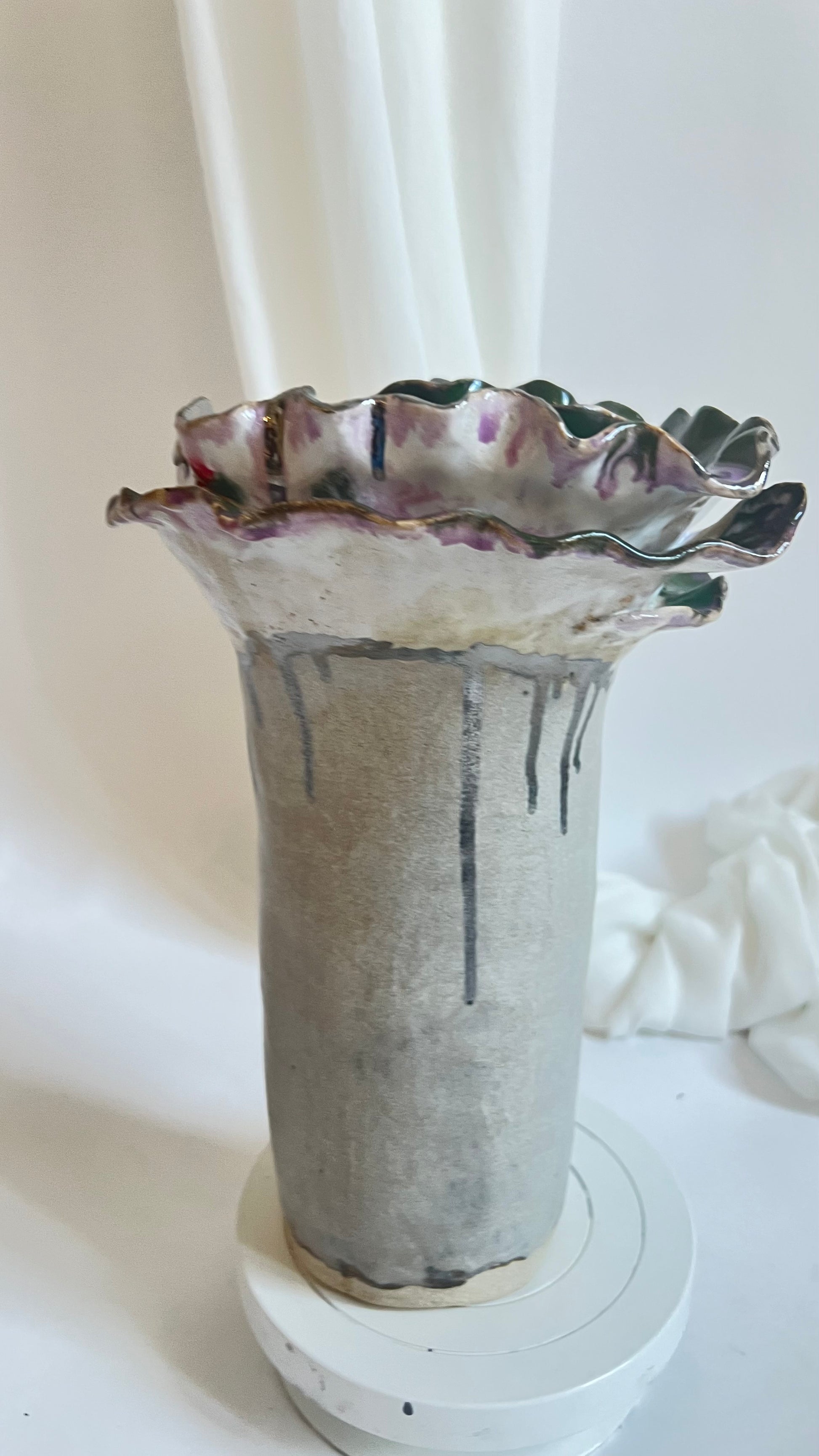 Each piece is hand-built, embracing the imperfections that define her signature style. The organic curves and tactile surfaces echo the drama of a dancer’s flowing dress, the rhythm of castanets, and the soulful essence of duende—the emotional depth at the heart of Spanish art.