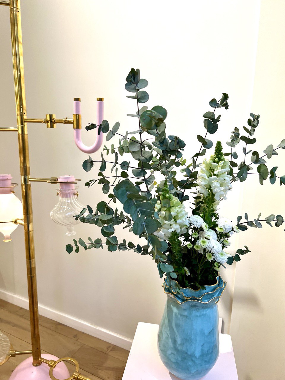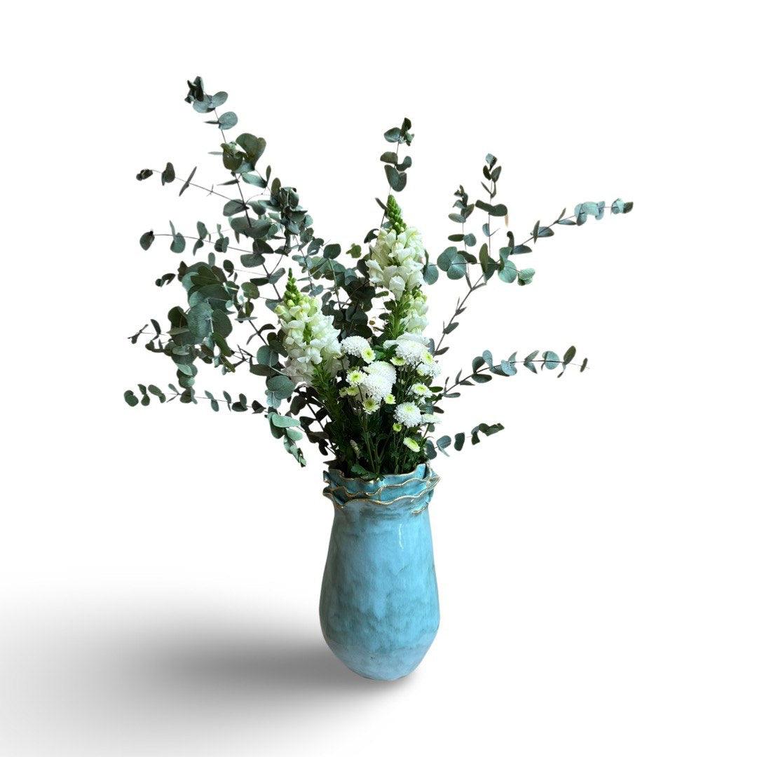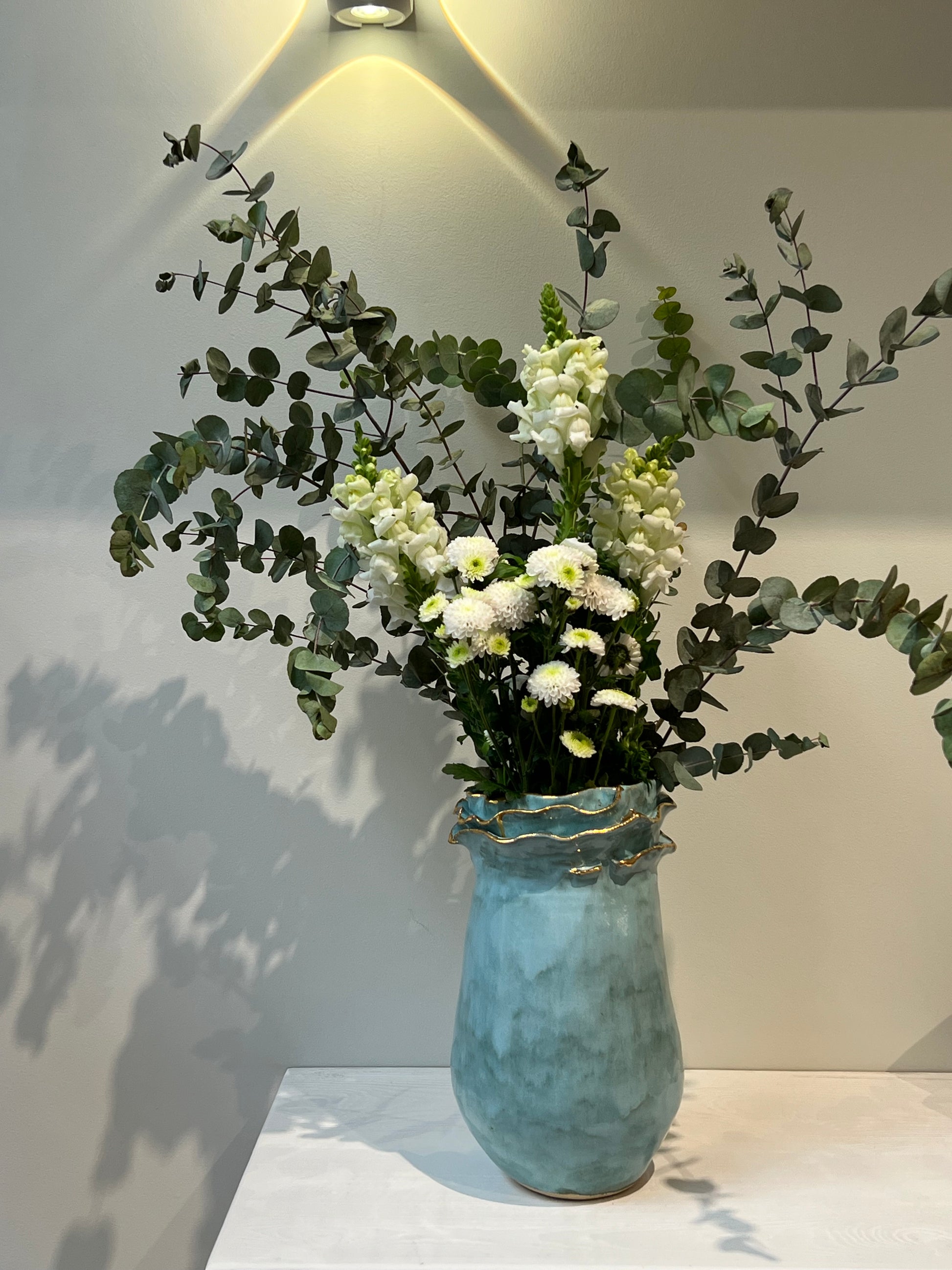 Unique piece in Stoneware, hand built and hand glazed and lustred in Gold