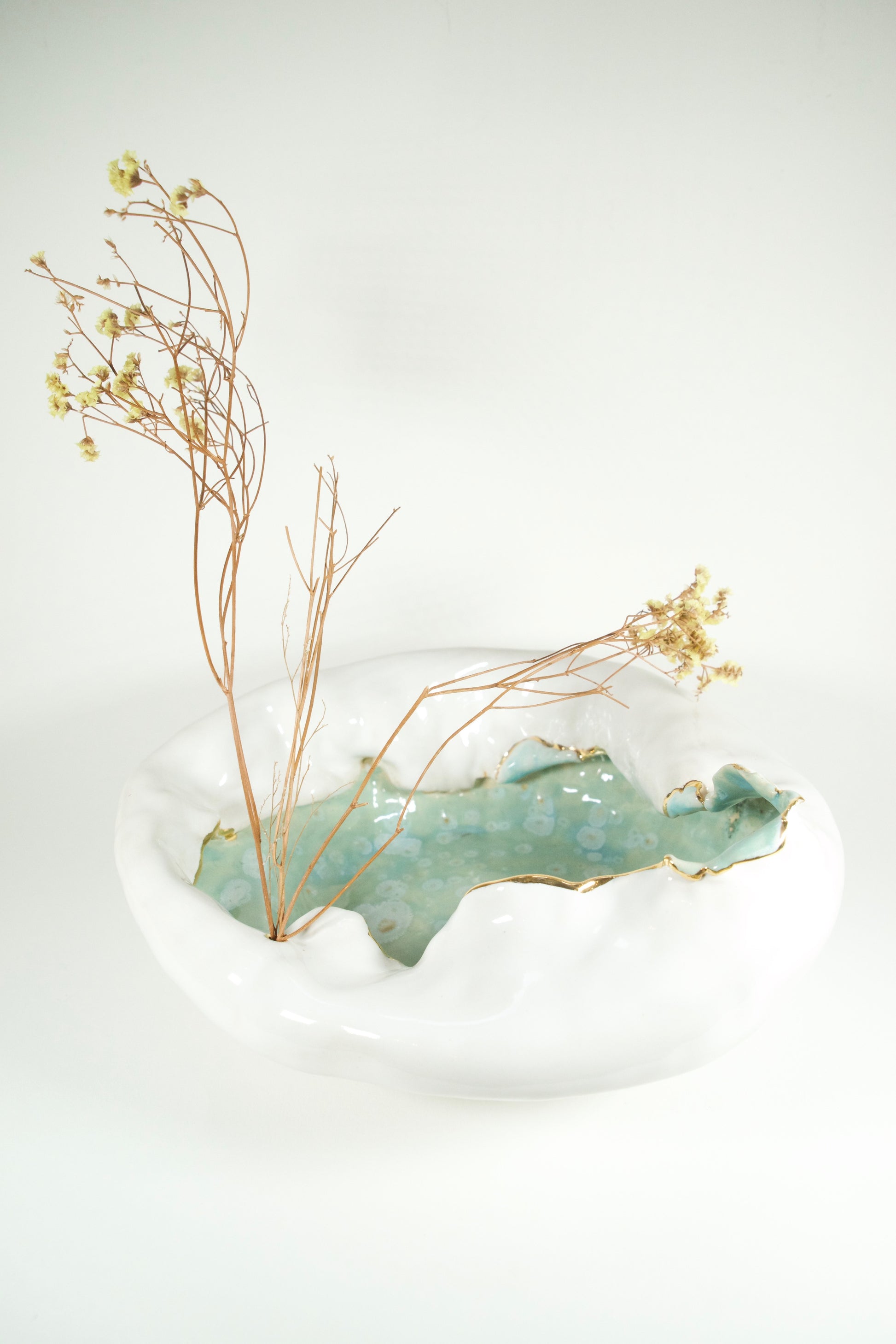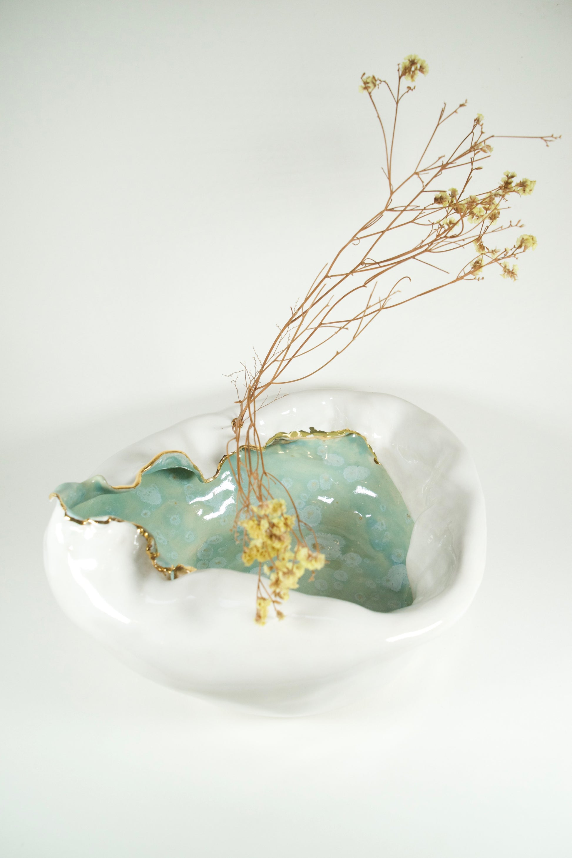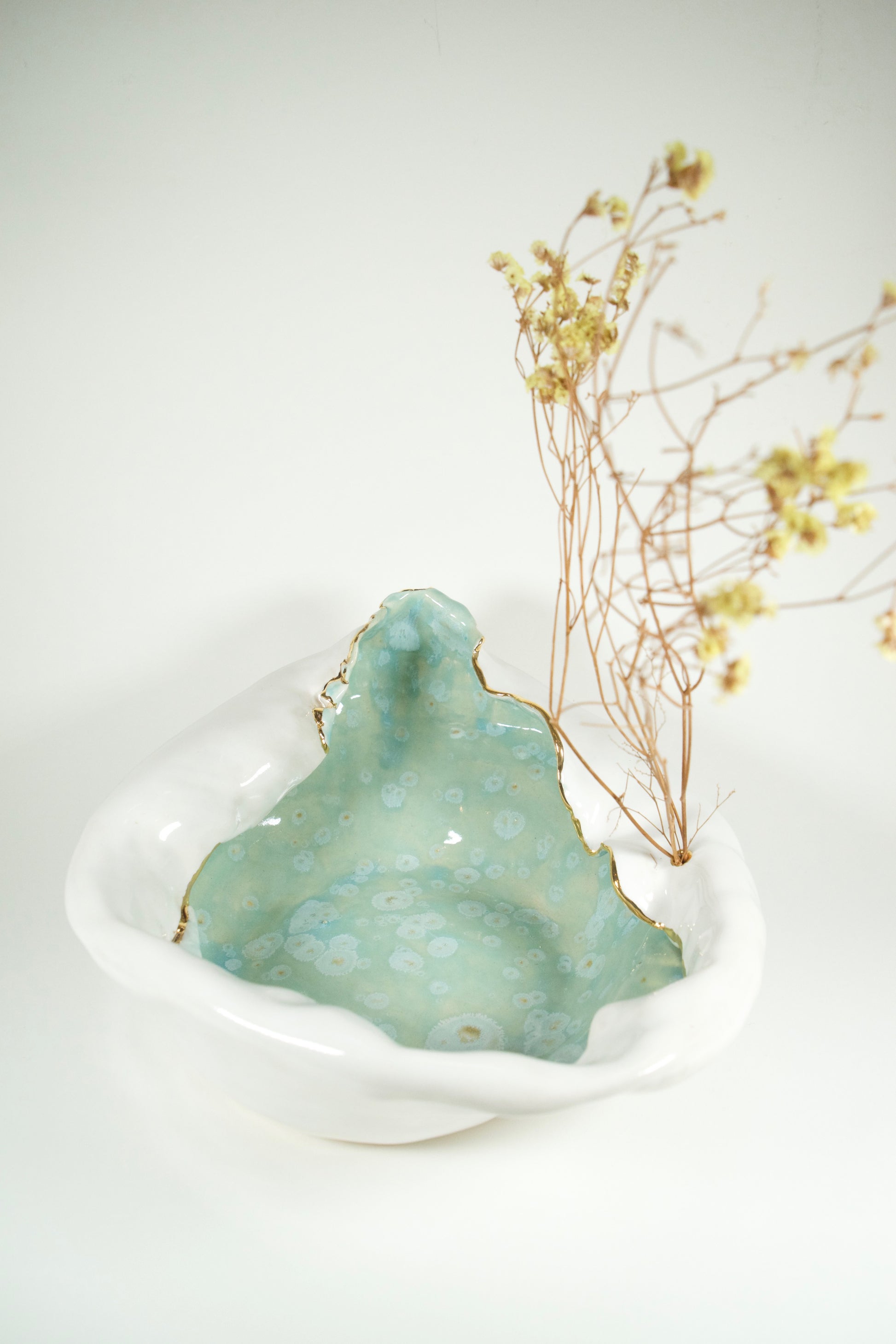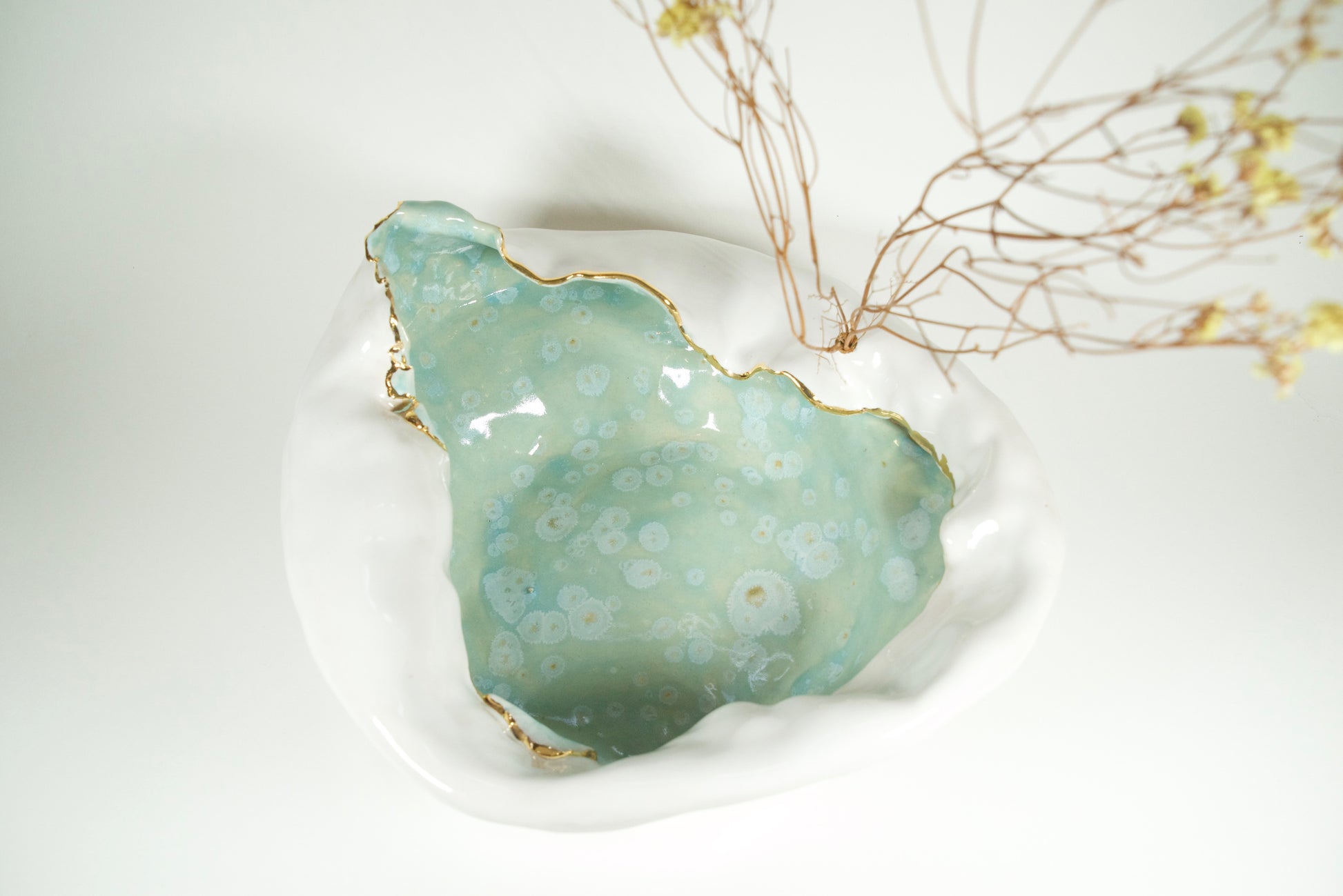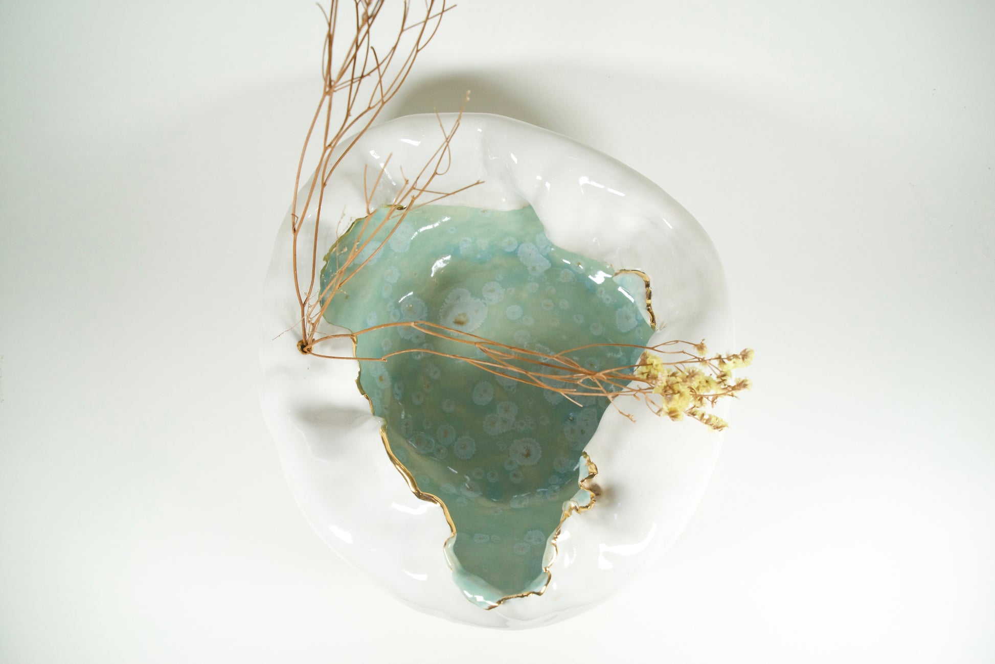 Hand built and hand glazed plate. This is a unique piece in porcelain, that could be decorative or functional.
