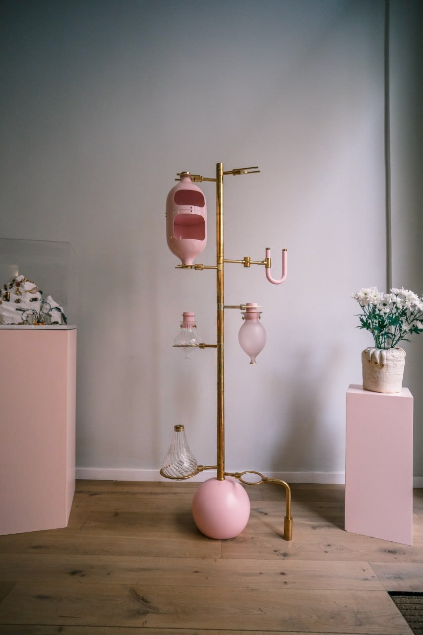 Inspired by chemistry sets and childhood memories, the Emotional Lab Light by Hania Jneid features glowing glass vessels and modular metal elements that invite playful, ever-shifting compositions — like emotional reactions in a lab.