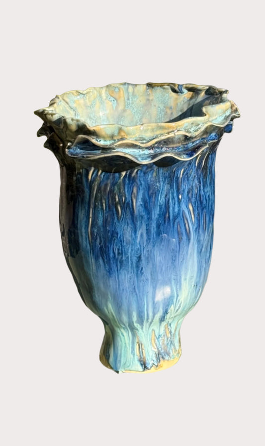 Naive Festive Stoneware Beige Green and Rose Vase By Hania Jneid